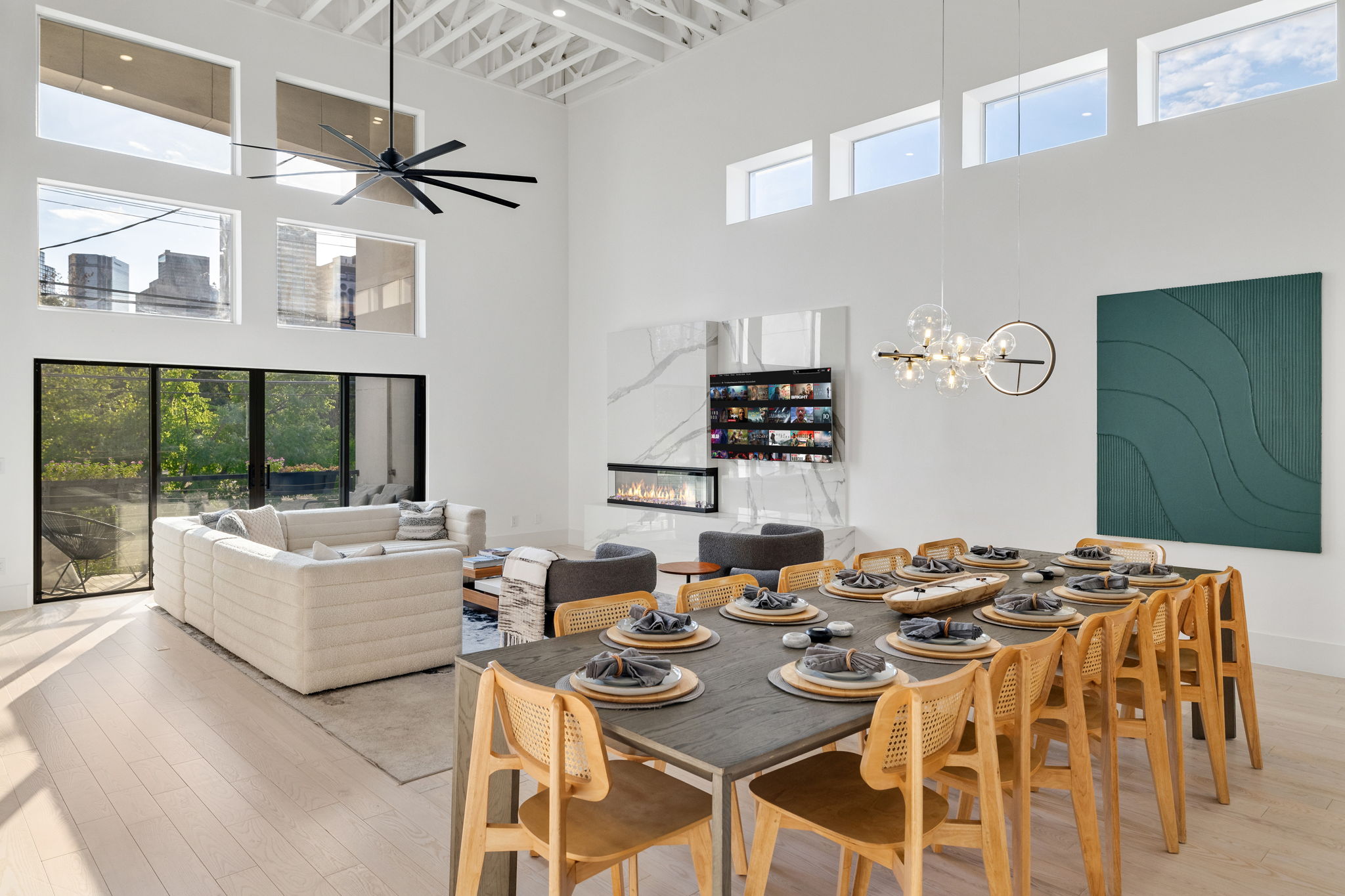 Dining & Living · Seats 12 · High ceilings