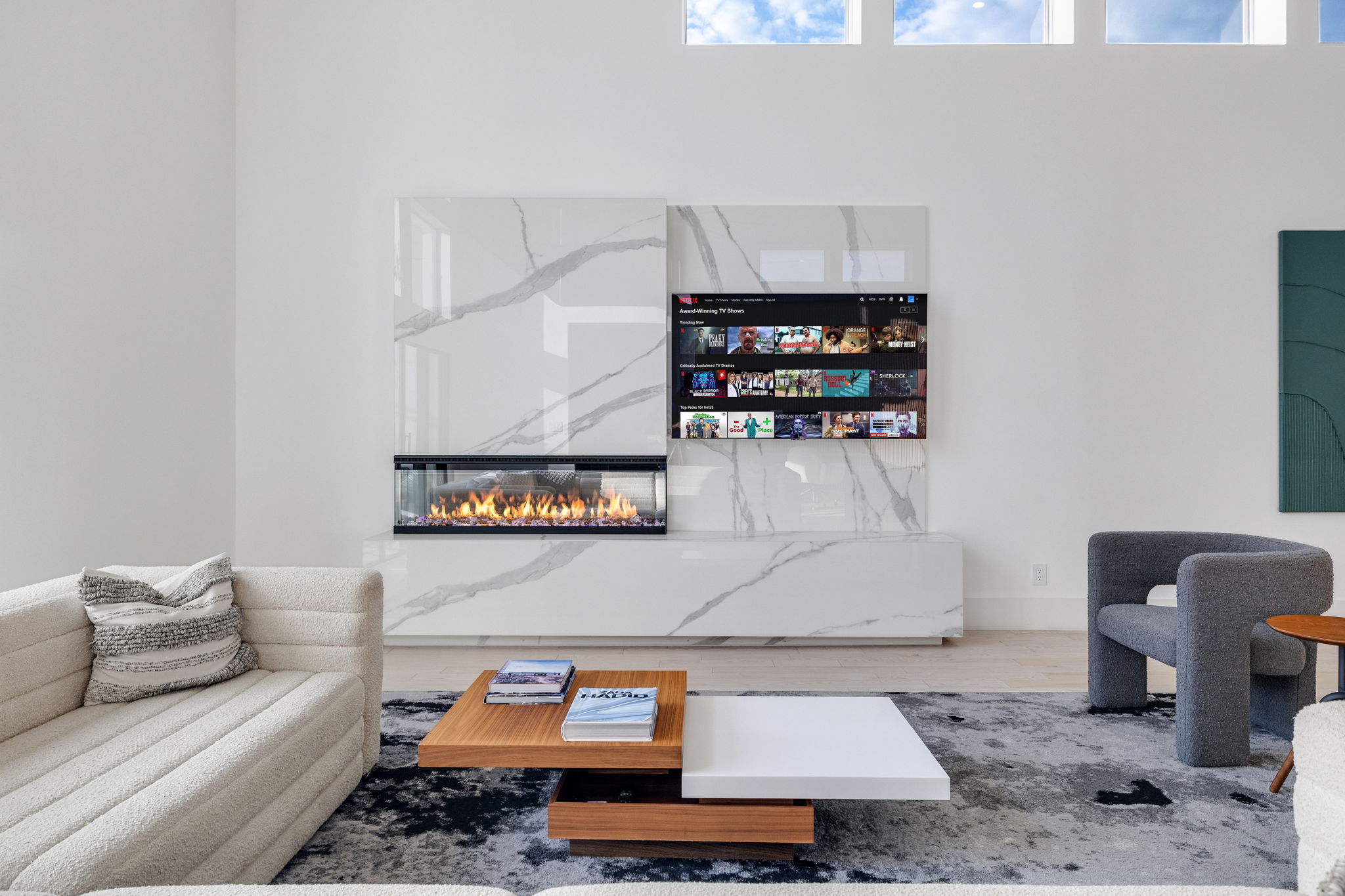 Living Room · Fireplace & Smart TV