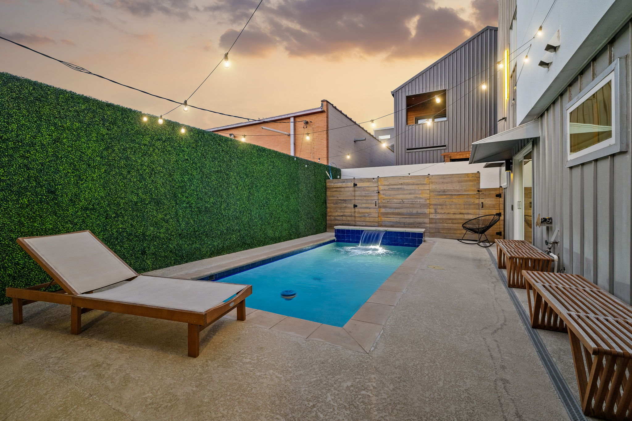 Pool · String lights & lounge
